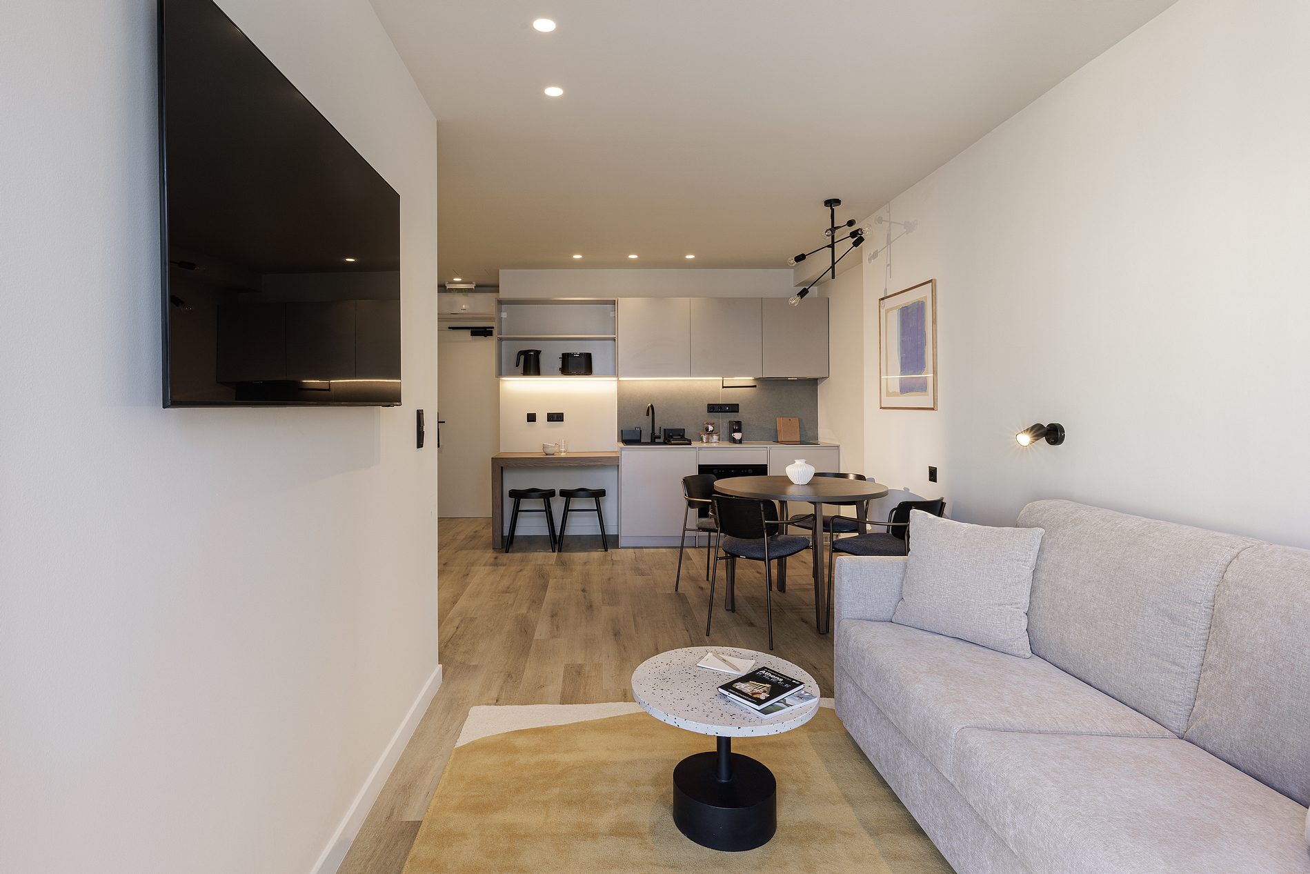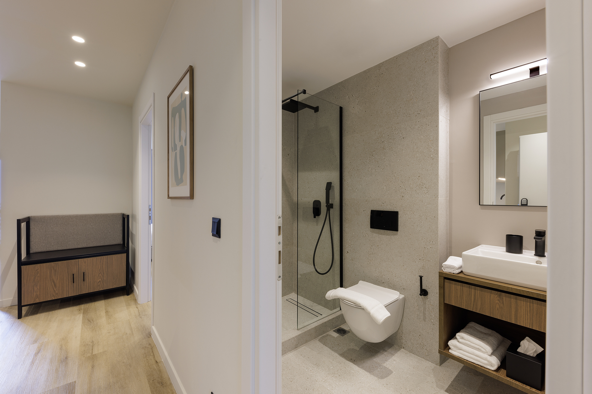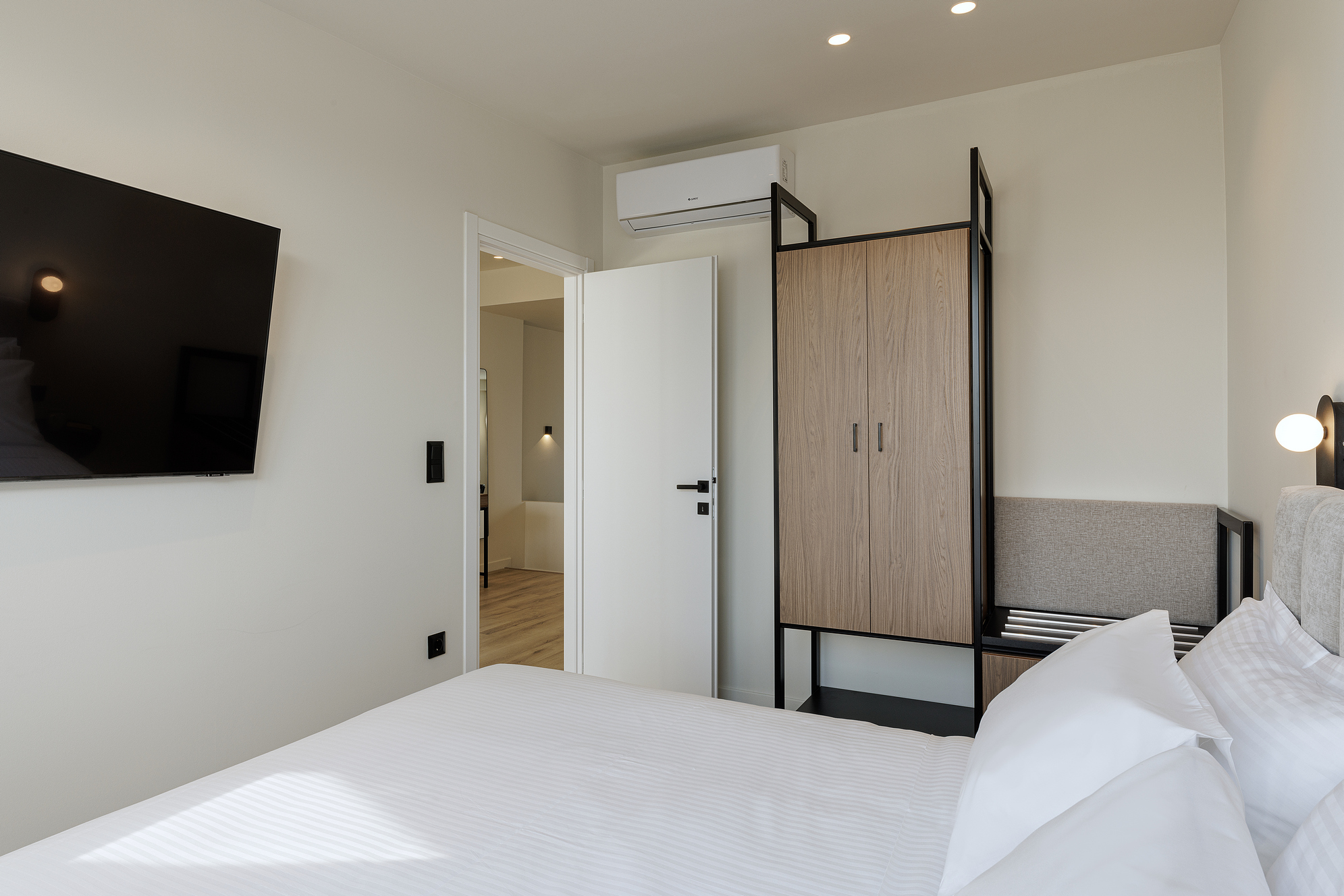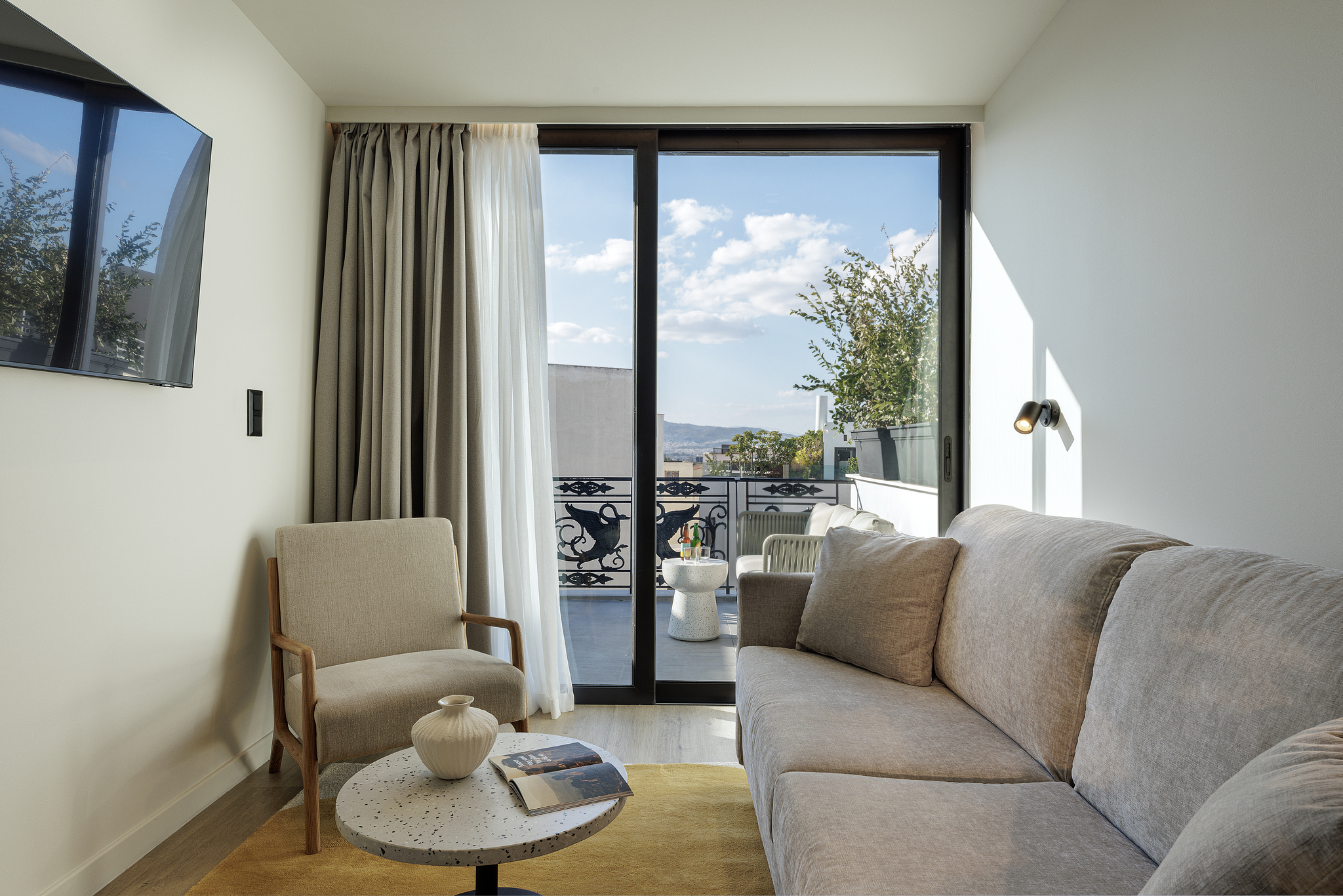 L’Attico Familiare presso master Plaka Athens offre un ampio e elegante rifugio, ideale per un massimo di otto ospiti. Con una superficie di 65 mq, questo attico adotta un design moderno e minimalista, mescolando toni neutri ed elementi pratici per creare un’atmosfera confortevole e accogliente.