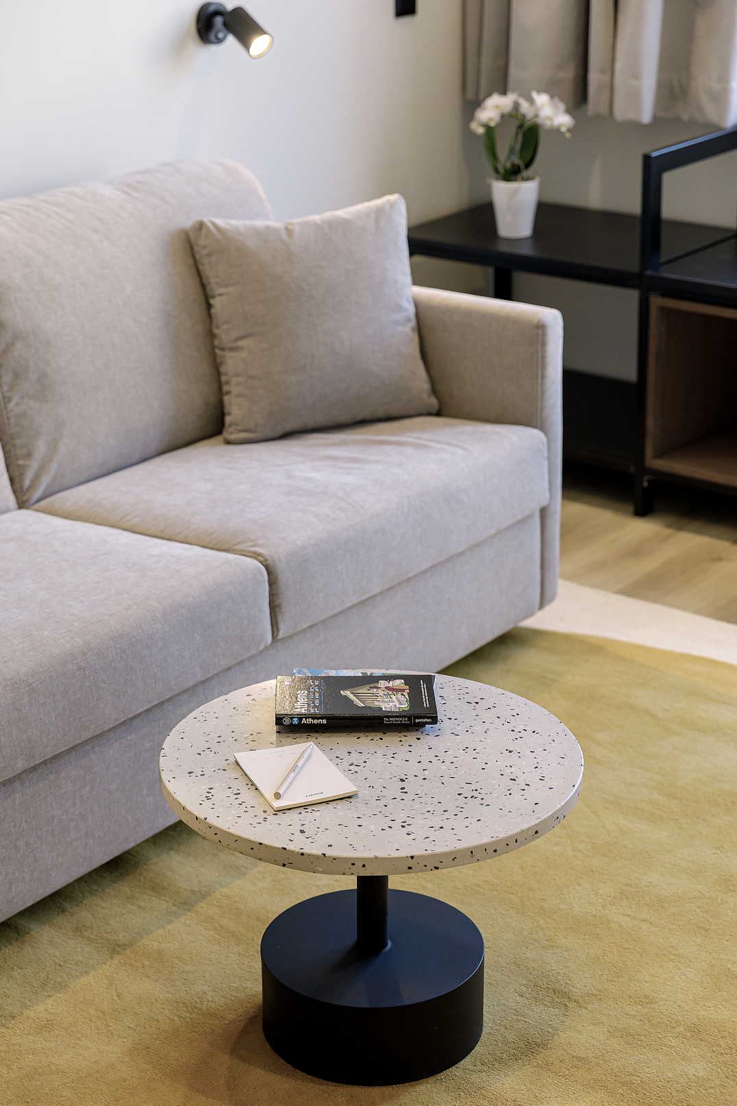 Dotato di una camera da letto separata e di un divano letto nell’area soggiorno, è ideale per famiglie o piccoli gruppi che cercano sia comfort che privacy. Il balcone privato offre il posto perfetto per rilassarsi e godere dell’atmosfera vivace di Plaka. Fornito di una cucina attrezzata, macchina per il caffè, Wi-Fi e articoli da toeletta, per garantire un soggiorno piacevole.