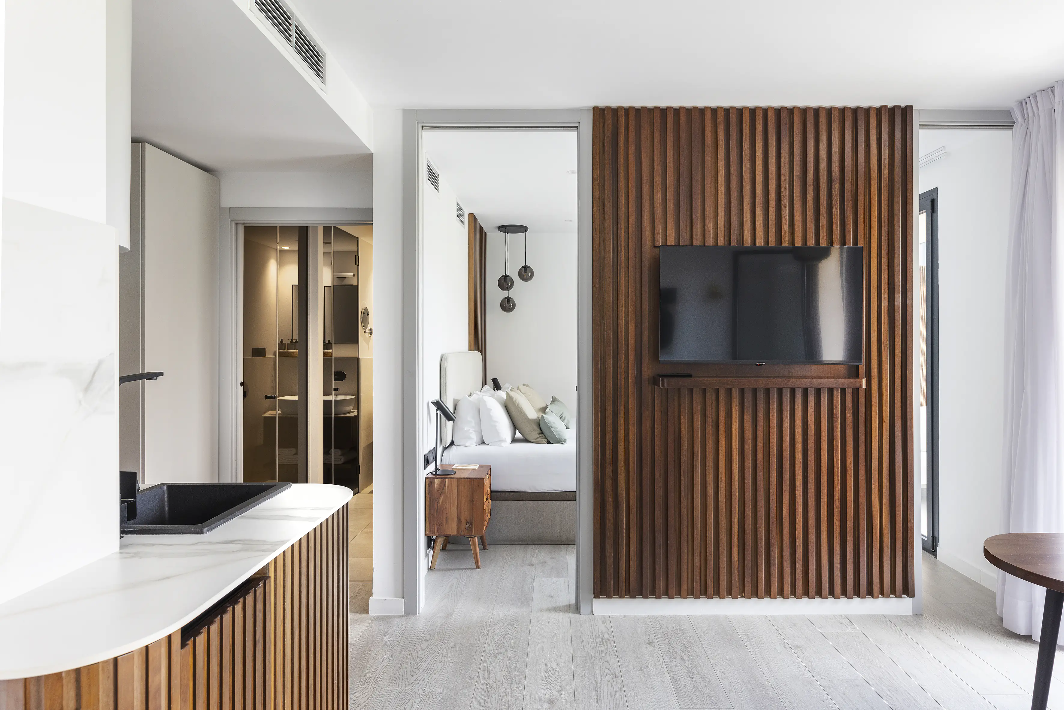 Linee pulite, tonalità delicate e un tocco di fascino urbano: questo appartamento di 41 m² con una camera da letto presso master La Rambla Appartamenti con servizi è pensato per vivere Barcellona in totale relax. Il design unisce il calore mediterraneo alla semplicità scandinava, creando uno spazio elegante e funzionale.