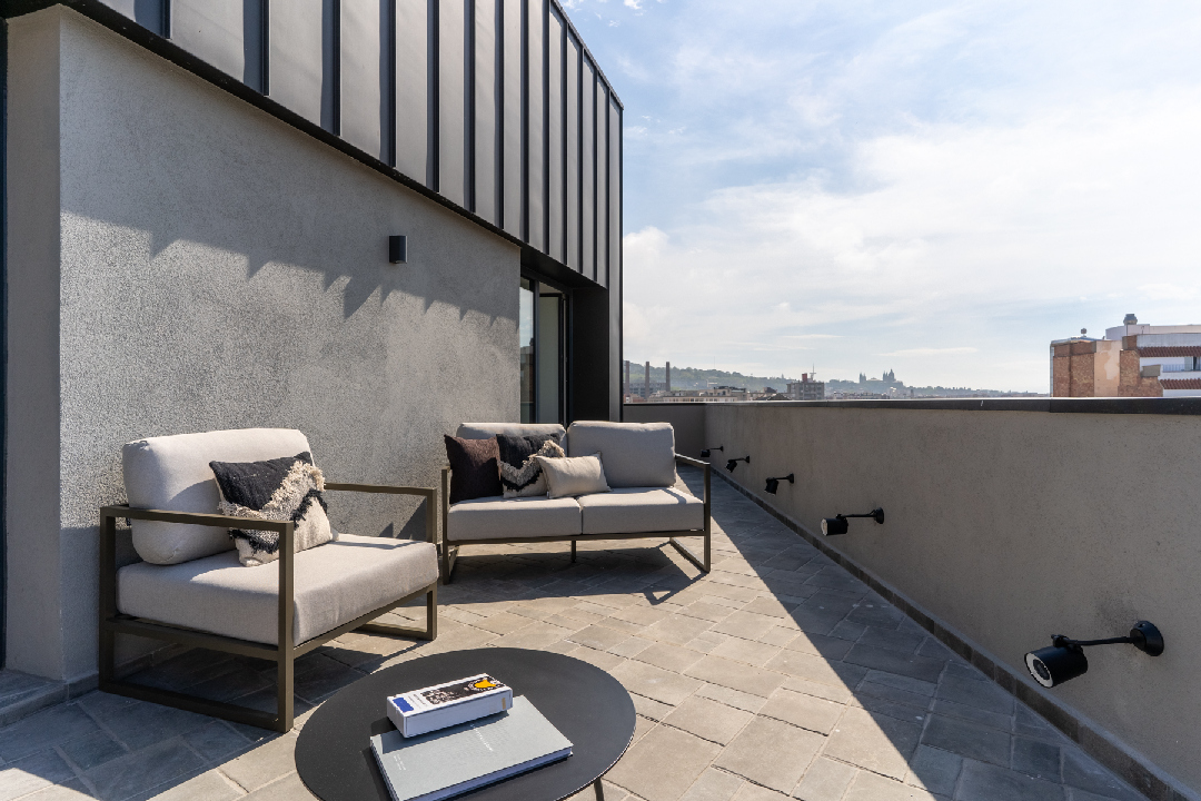 Il vero punto forte? Una spaziosa terrazza privata che si apre sul cielo di Barcellona: un rifugio soleggiato tutto per te, nel cuore della città. Ideale per sei ospiti che desiderano più spazio per rilassarsi e godersi ogni momento.