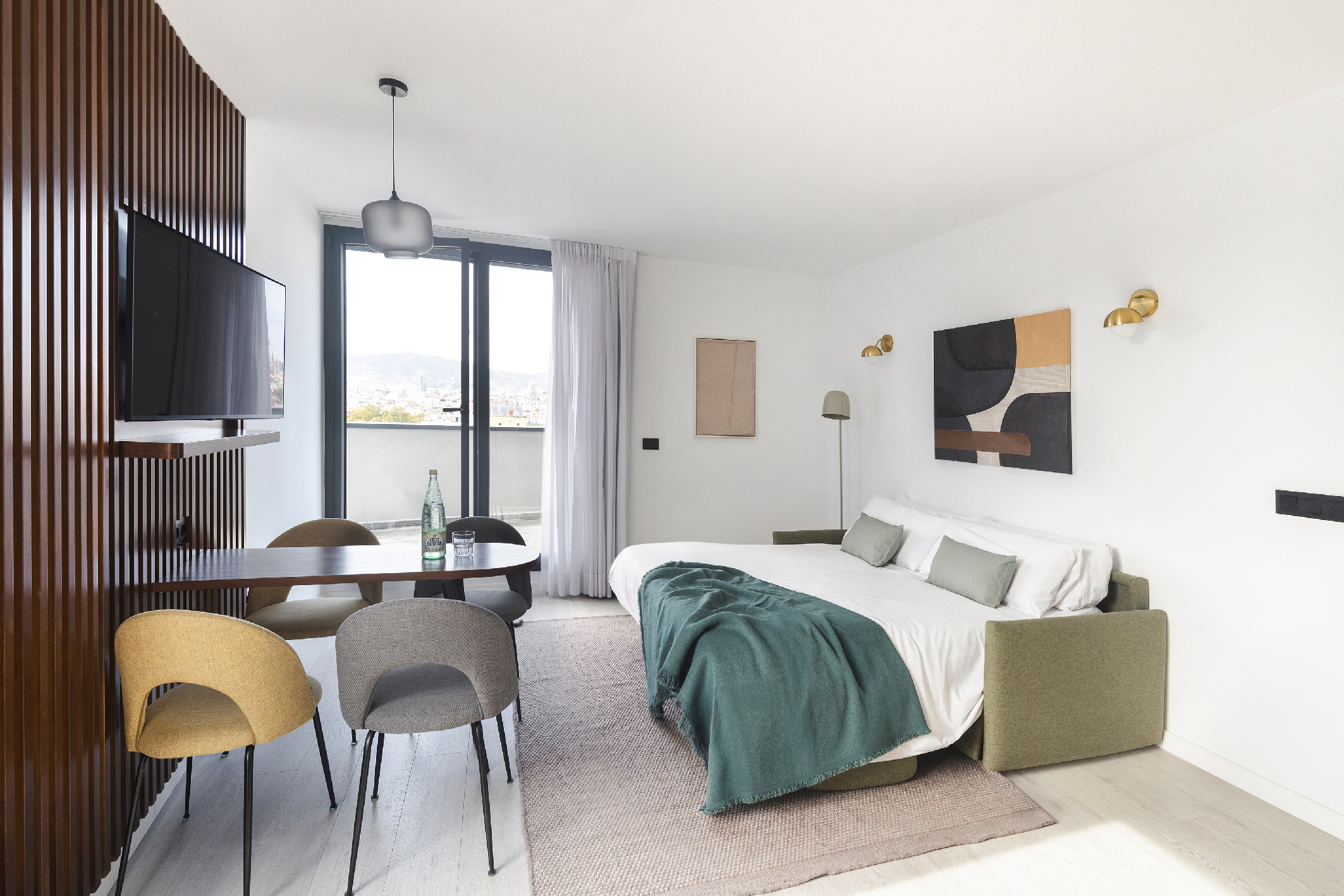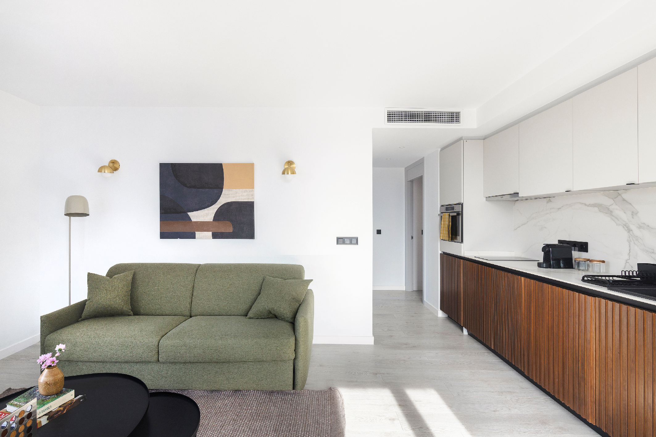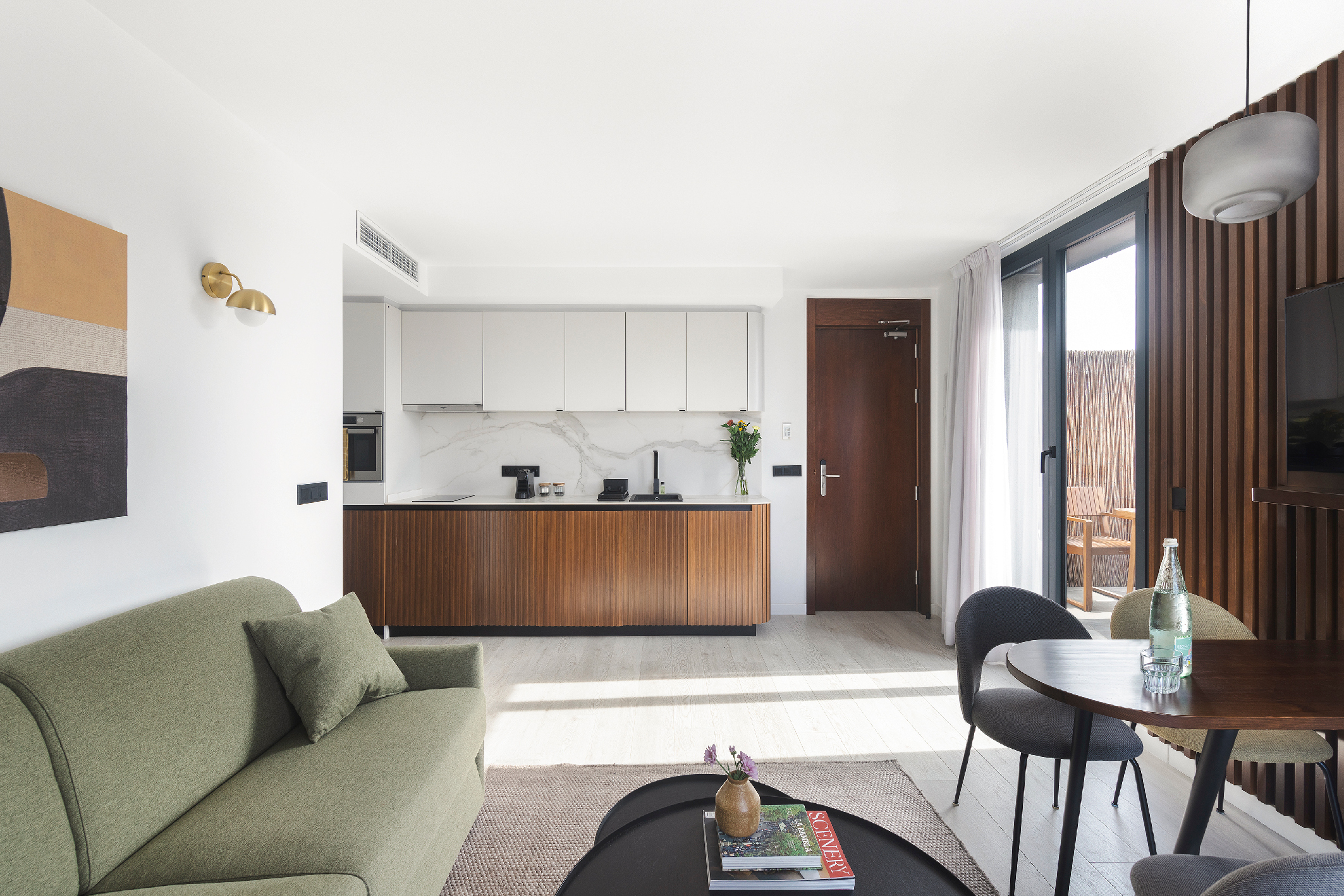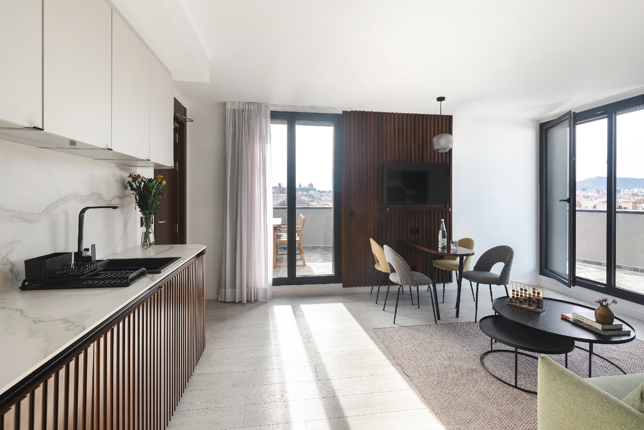 Situato all’ultimo piano dei master La Rambla Appartamenti serviti, questo attico di 70 m² è pensato per un soggiorno esclusivo e raffinato. Il design, che unisce lo stile mediterraneo contemporaneo alla semplicità scandinava, è essenziale, luminoso e ricco di calore, con il perfetto equilibrio tra eleganza e comfort.