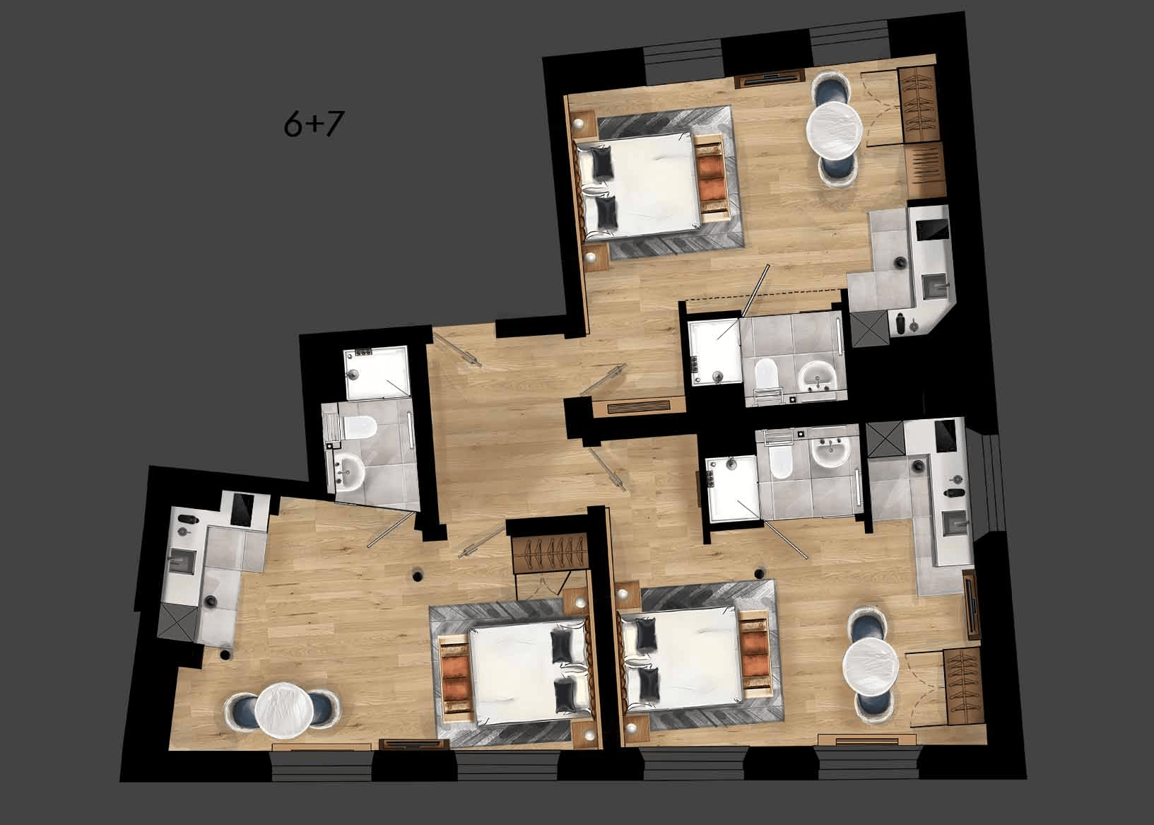 Per le famiglie più numerose o per gruppi, l’appartamento familiare presso master Cannon offre un ampio spazio abitativo di 78 mq, progettato con gusto. In grado di ospitare fino a sei persone, questo appartamento è un vero rifugio di comfort e praticità. Il design riflette il minimalismo scandinavo, con tonalità calde, spazi ordinati e finiture naturali che creano un’atmosfera leggera e rilassante.
