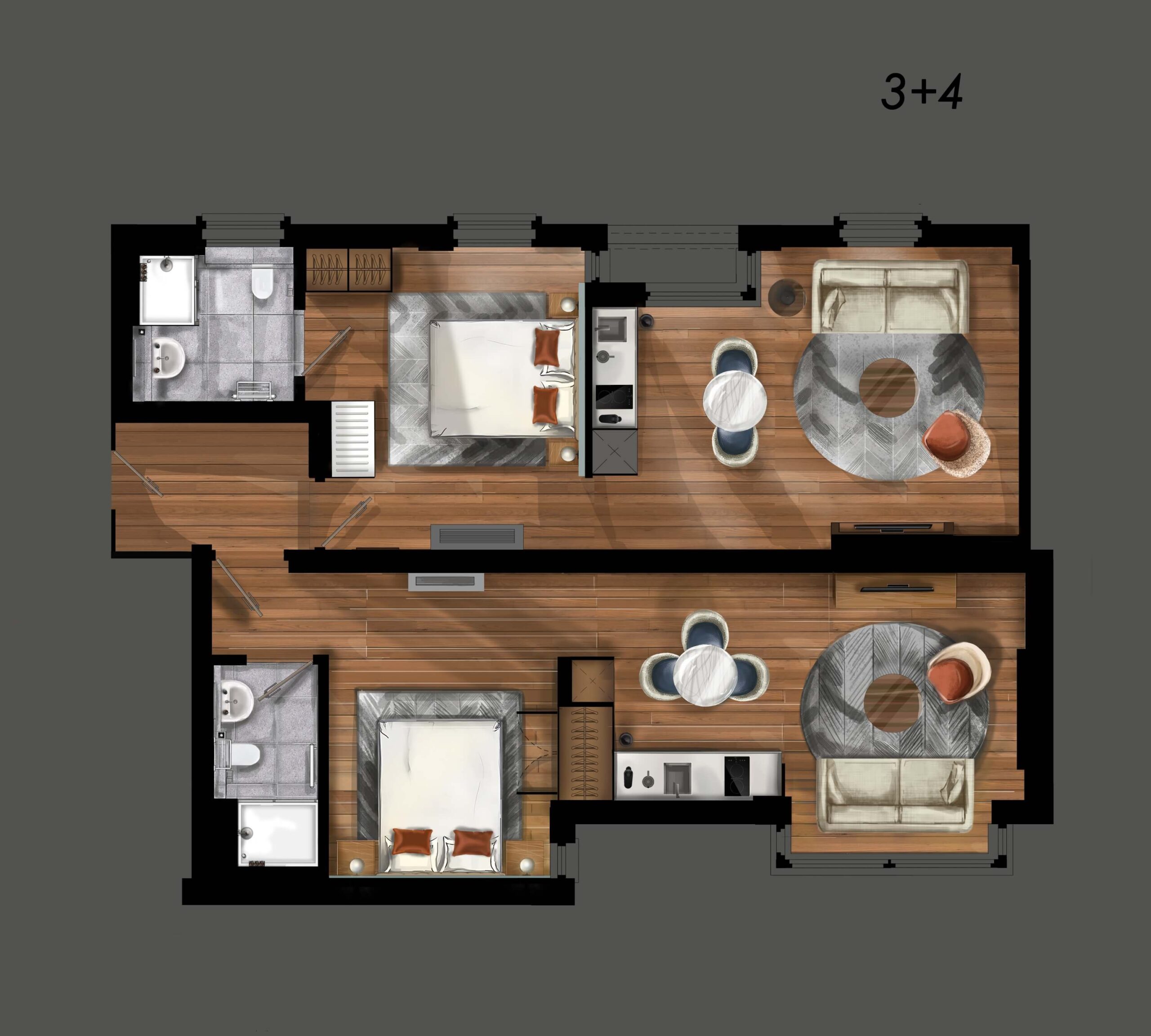 Ogni appartamento è completamente attrezzato con una gamma di servizi per rendere il tuo soggiorno confortevole e conveniente. Goditi un’area soggiorno accogliente, una cucina elegante completa di lavastoviglie e un layout minimalista che bilancia funzionalità ed estetica. Gli appartamenti sono inoltre forniti di Wi-Fi ad alta velocità e TV a schermo piatto per farti sentire come a casa.