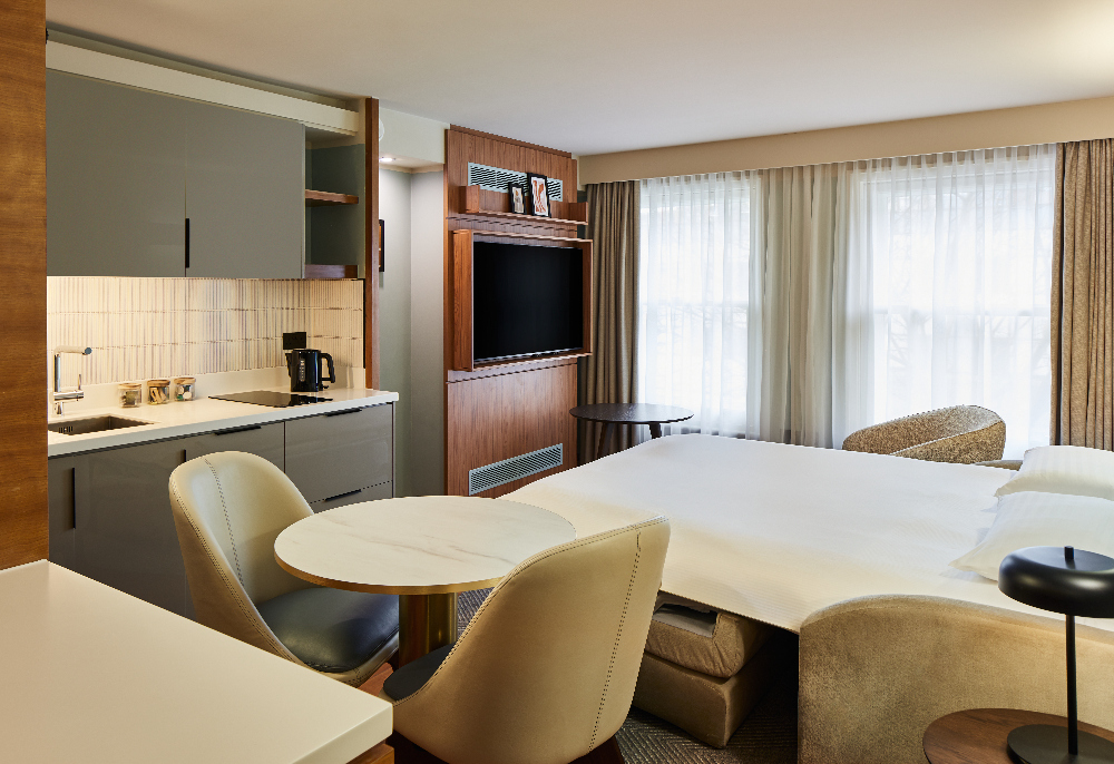 Ogni appartamento è completamente attrezzato con una gamma di servizi per rendere il tuo soggiorno confortevole e conveniente. Goditi un’area soggiorno accogliente, una cucina elegante completa di lavastoviglie e un layout minimalista che bilancia funzionalità ed estetica. Gli appartamenti sono inoltre forniti di Wi-Fi ad alta velocità e TV a schermo piatto per farti sentire come a casa.