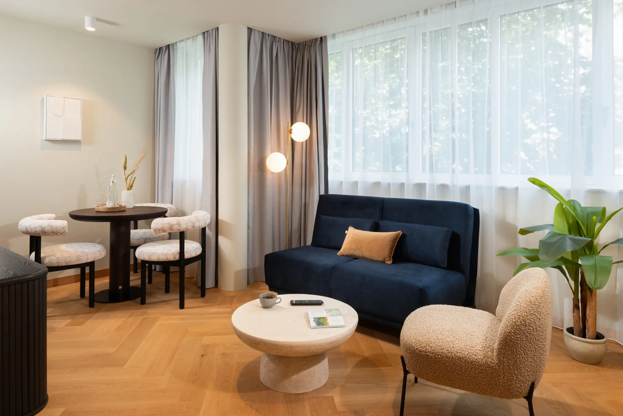 Scopri l’eleganza e la grande sensazione di spazio della nostra Deluxe Suite con 1 Camera da Letto. Progettata per ospitare fino a quattro persone, questa lussuosa suite di 32 mq garantisce un soggiorno confortevole e indimenticabile a Salisburgo.