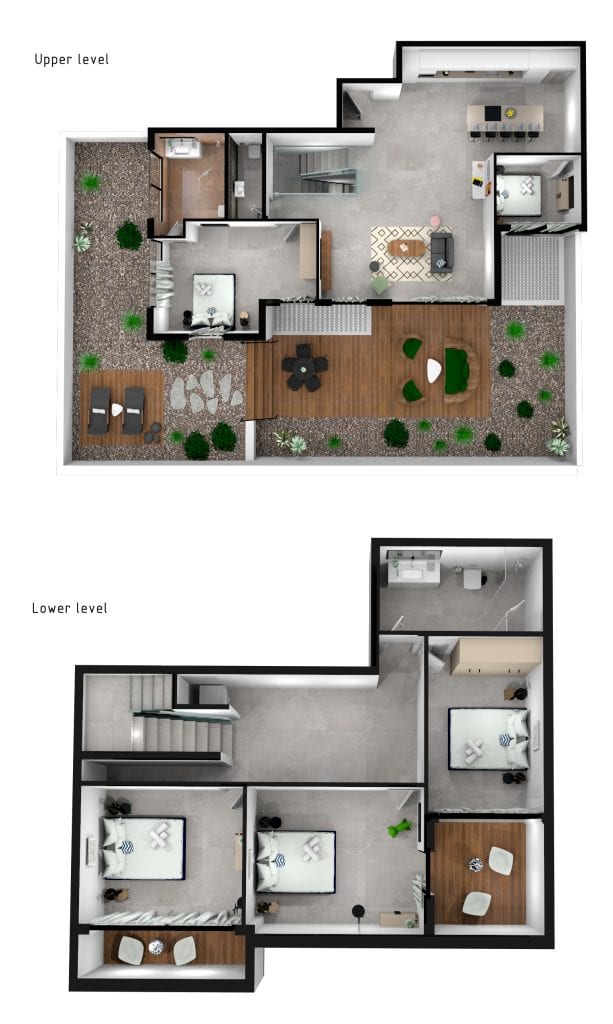 Il nostro Duplex con cinque camere da letto e Giardino offre un’oasi di tranquillità e stile, perfetto per vacanze in famiglia o soggiorni di lavoro prolungati. Con i suoi 350 mq, può ospitare fino a 10 persone e vanta un giardino privato immerso nel verde, ideale per cene all’aperto o momenti di relax.