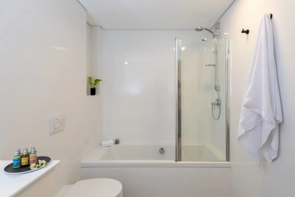 La cucina, completamente attrezzata, include frigorifero, piano cottura, forno a microonde, tostapane e lavastoviglie. Potrai gustare i tuoi piatti fatti in casa sull’isola della cucina, con quattro sgabelli, o sulla terrazza con vista sulla città. E come non poteva mancare, la macchina Nespresso con una varietà di miscele di caffè ti darà la carica giusta per iniziare la giornata.