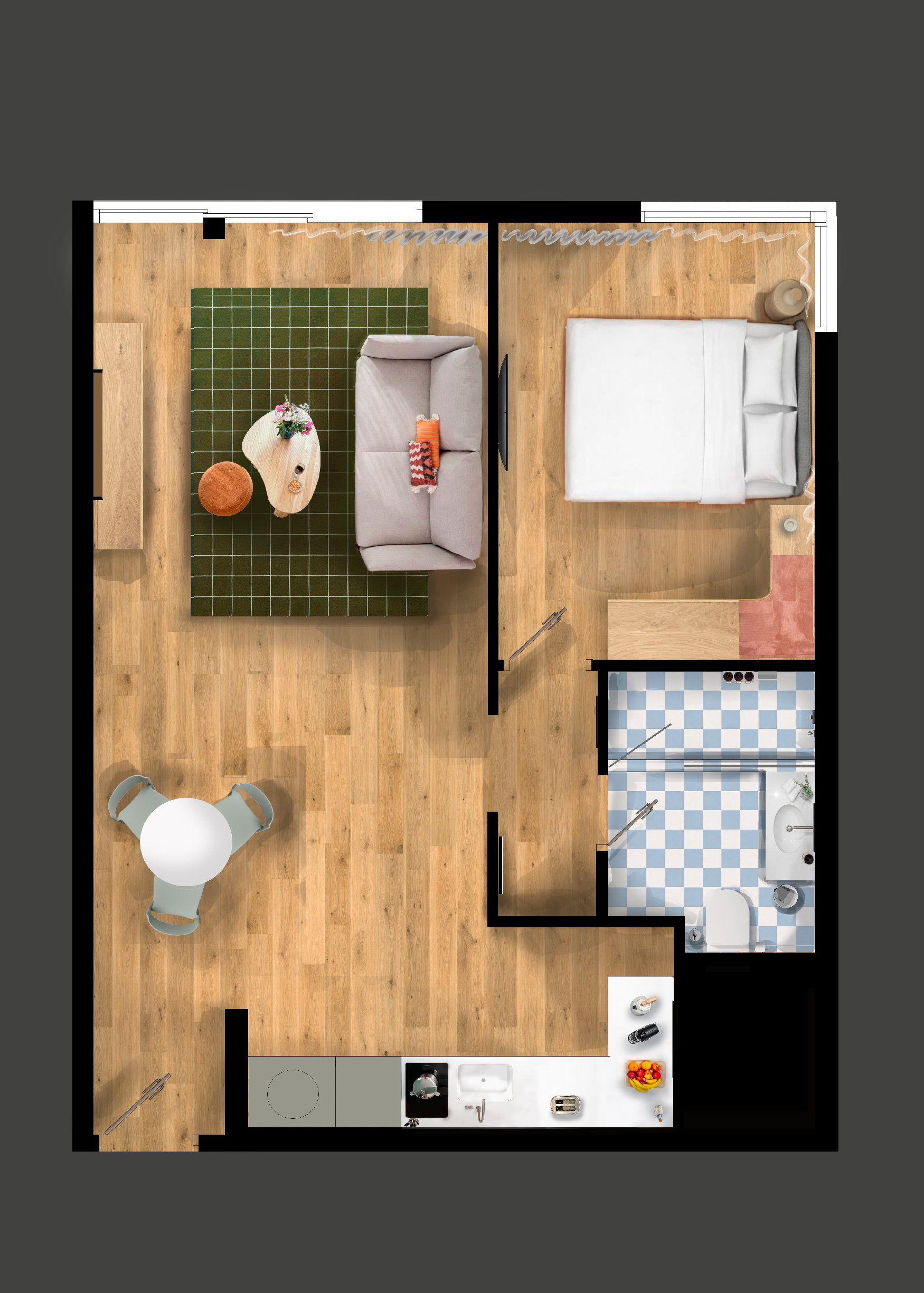 Con i suoi 46 metri quadrati, questo appartamento accogliente offre una zona giorno confortevole con divano letto, perfetto sia per soggiorni brevi che prolungati. L’appartamento è dotato di aria condizionata, TV a schermo piatto e Wi-Fi gratuito, oltre a pratici servizi come articoli da toeletta, macchina da caffè, lavatrice e asciugatrice per un’esperienza comoda e senza pensieri.